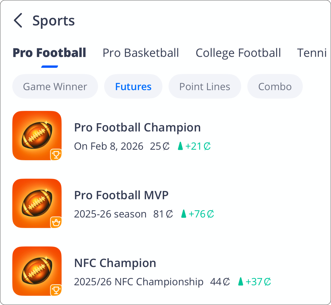 Sports event contracts allow participants to trade on clearly defined outcomes, rather than wagering against a bookmaker. Contract prices may change over time as new information becomes available and as market conditions evolve.
