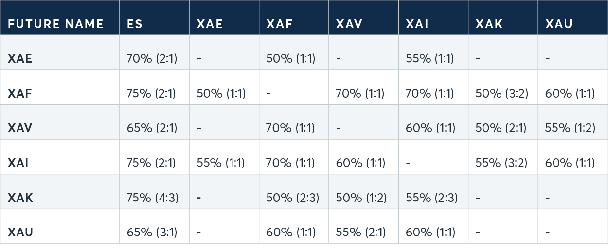 There is also a 70% margin offset between E-mini Energy Select Sector futures (XAE) and E-mini S&P 500 futures (ES) (in 2:1 ratio).