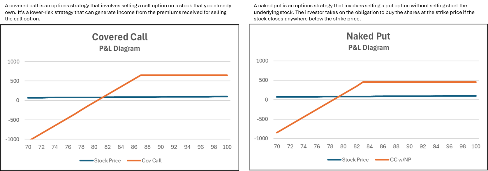 This article discusses an investment strategy that includes the use of both a covered call and a naked put. Variations to this strategy may involve implementing either a straightforward covered call or a covered call in conjunction with a put credit spread.