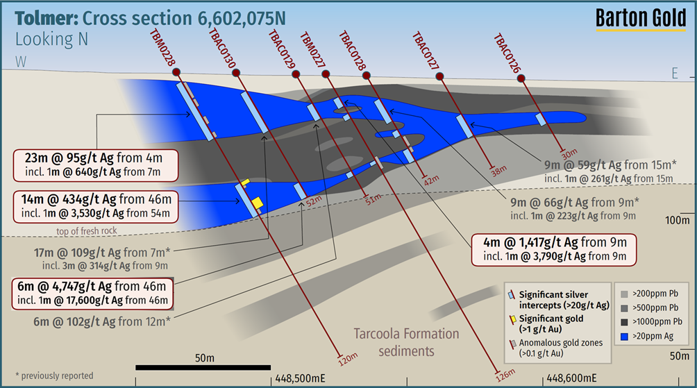 ADELAIDE, AUSTRALIA / ACCESS Newswire / May 11, 2025 / Barton Gold Holdings Limited (ASX:BGD)(FRA:BGD3)(OTCQB:BGDFF) (Barton or Company) is pleased to confirm that follow-up drilling has been expedited at its South Australian Tarcoola Gold Project (Tarcoola), where Tolmer's new ‘silver zone' was discovered in a line of seven discovery holes returning three globally significant assays.1 Bullion Drilling has been engaged as driller, with drilling expected to start next week.