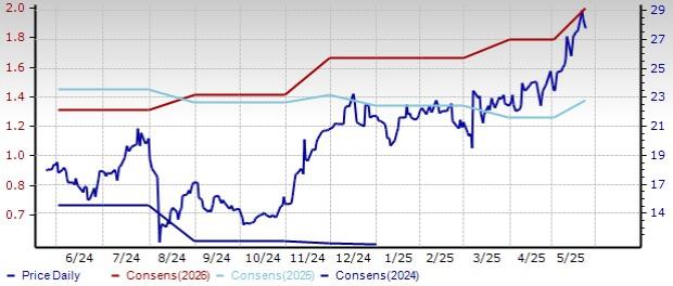Lincoln, carrying a Zacks Rank #2, has surged 82.4% over the past year. It has seen an upward estimate revision for the 2025 earnings estimate to 72 cents per share from 68 cents over the past 30 days. LINC’s earnings for 2025 are expected to grow 28.6%. Its earnings topped consensus estimates in three of the trailing four quarters and missed on one occasion, with the average surprise being 217.8%.