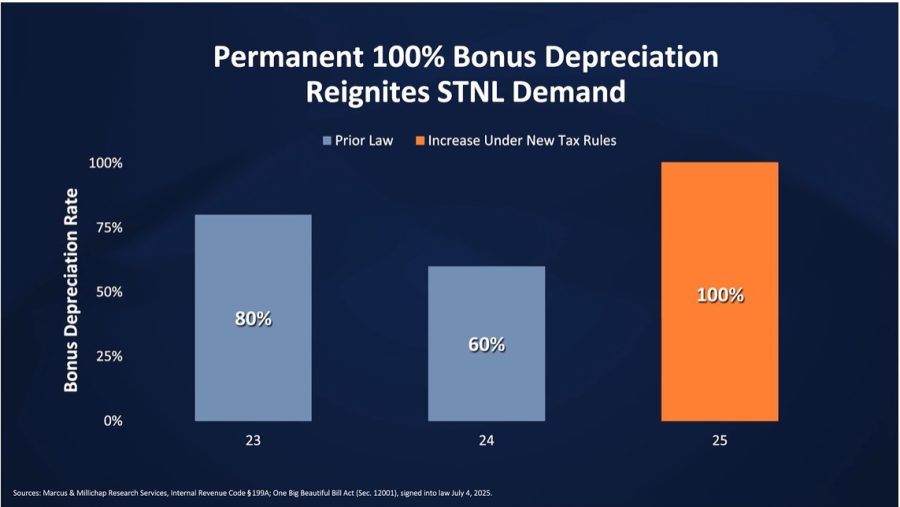 According to Chang, the bonus depreciation rate stepped down to 80% in 2023 and then to 60% in 2024. The permanence of bonus depreciation, as well as the minimal maintenance requirements, means NNN real estate properties continue to be in high demand.