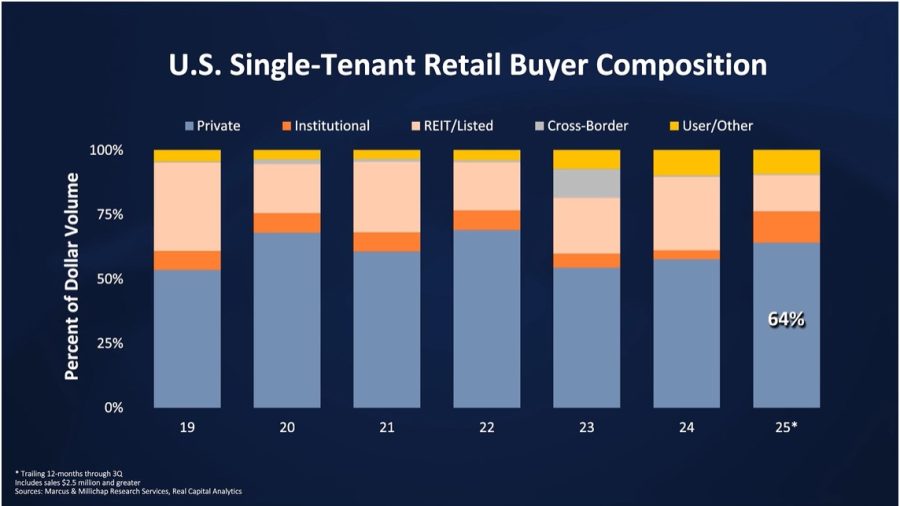 Chang noted that private investors made up 64% of the purchase activity within the last year and “many of those investors have leveraged 1031 exchanges to exit more management-intensive commercial real estate as part of their retirement and estate planning processes.”
