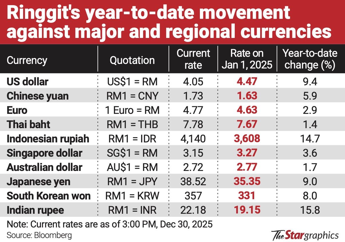 Beyond a softer US dollar, the ringgit also recorded broad-based gains against major trading partners in 2025.
